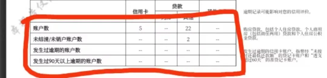 这个包含历史账户数和在用账户数,历史账户数是我们已经结清的贷款账户数量,在用贷款账户数就是我们仍在使用的贷款账户数量。