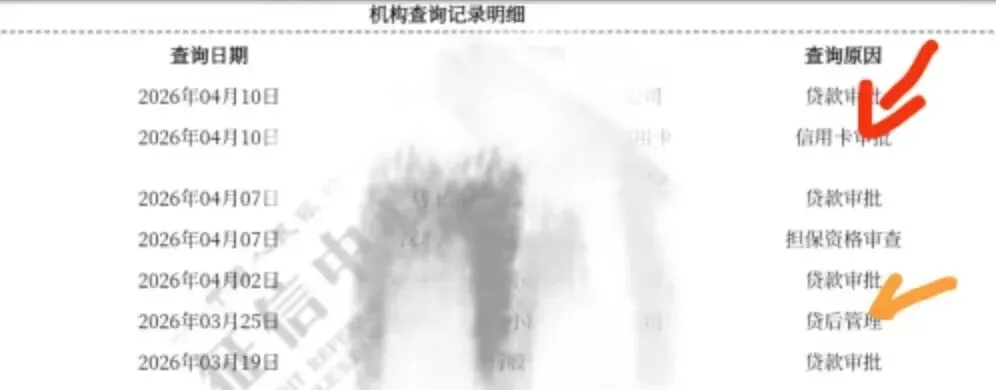 包含申请时间、金融机构名称、查询原因,我们从严重程度从高到低来说: