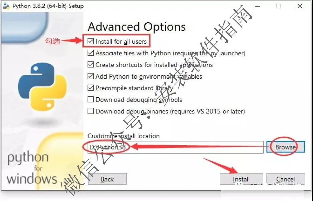 6、勾选 Install for all users,点Browse选择安装位置,然后点Install