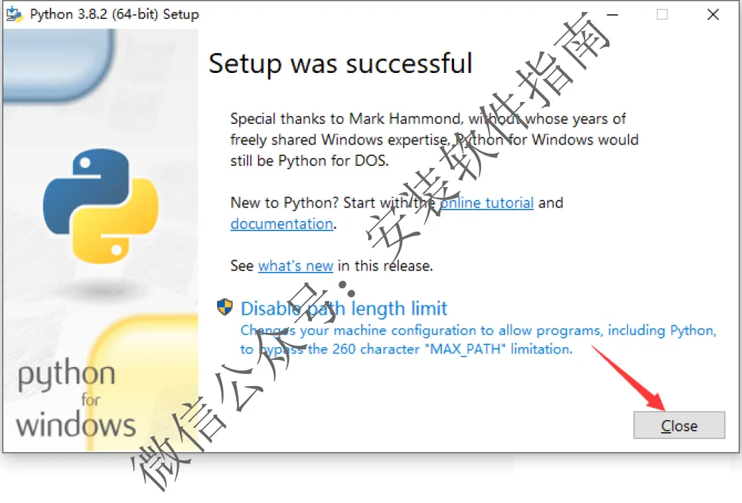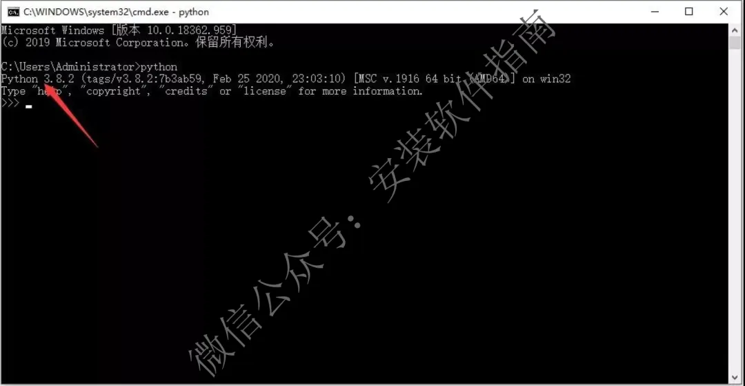 12、显示当前python版本为3.8.2则表示安装成功,关掉这个界面即可。