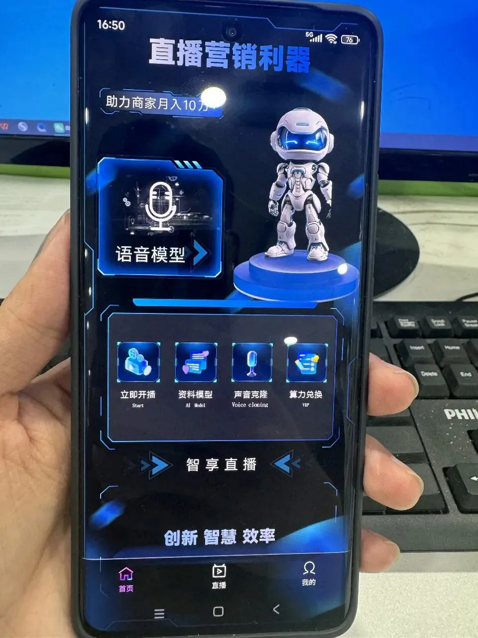 4. 低门槛快速上手:手机即可开播,输入产品资料自动生成话术,零基础2分钟完成搭建