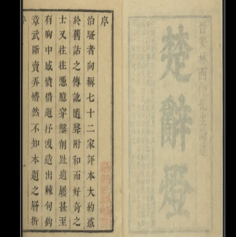 《楚辭燈》是清代学者林雲銘在楚辞研究基础上所作的重要注释著作,全书共四卷,由林沅校订,属于清康熙丁丑年(公元1697年)候官林氏挹奎楼刻本。