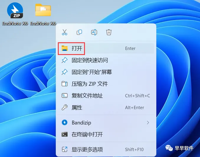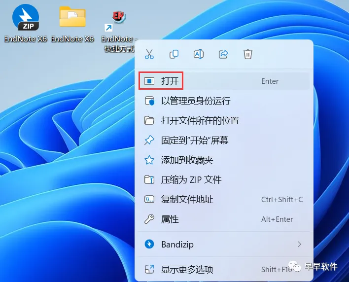 7、回到桌面,右键桌面上的【EndNote软件图标】,点击【打开】