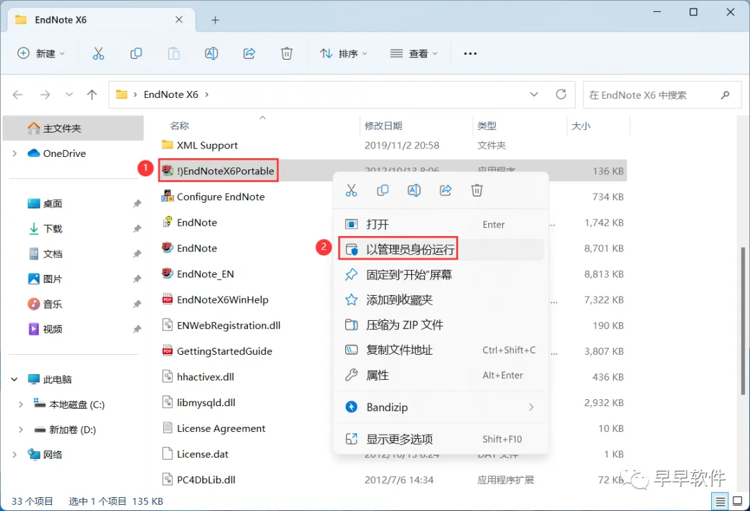 3、找到【EndNoteX6…】应用程序,右键选择【以管理员身份运行】它
