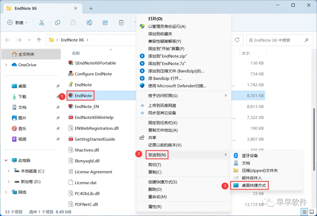6、找到【EndNote】应用程序,右键依次点击【显示更多选项】、【发送到】、【桌面快捷方式】,完成软件桌面快捷方式的创建