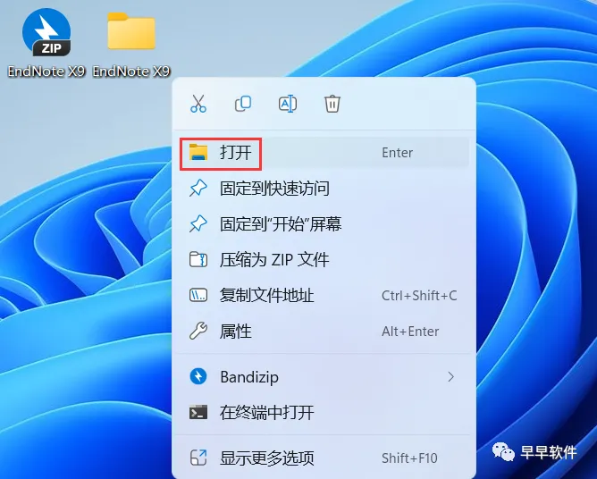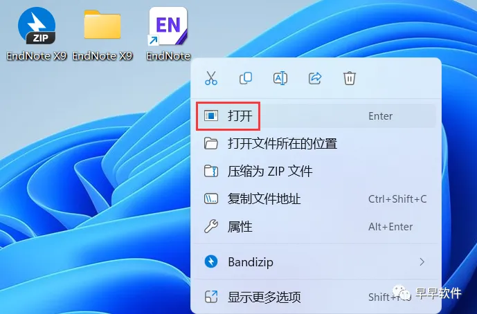 19、右键桌面上的【EndNote软件图标】,点击【打开】