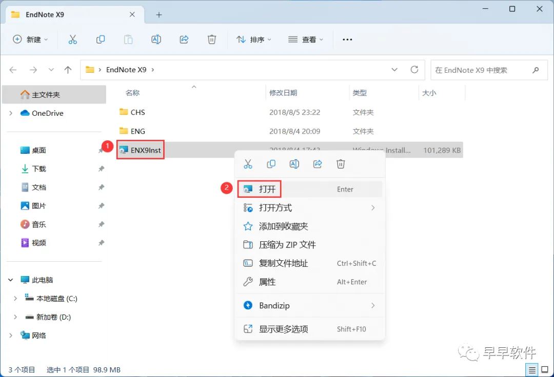 3、找到【ENX9Inst】应用程序,右键【打开】它