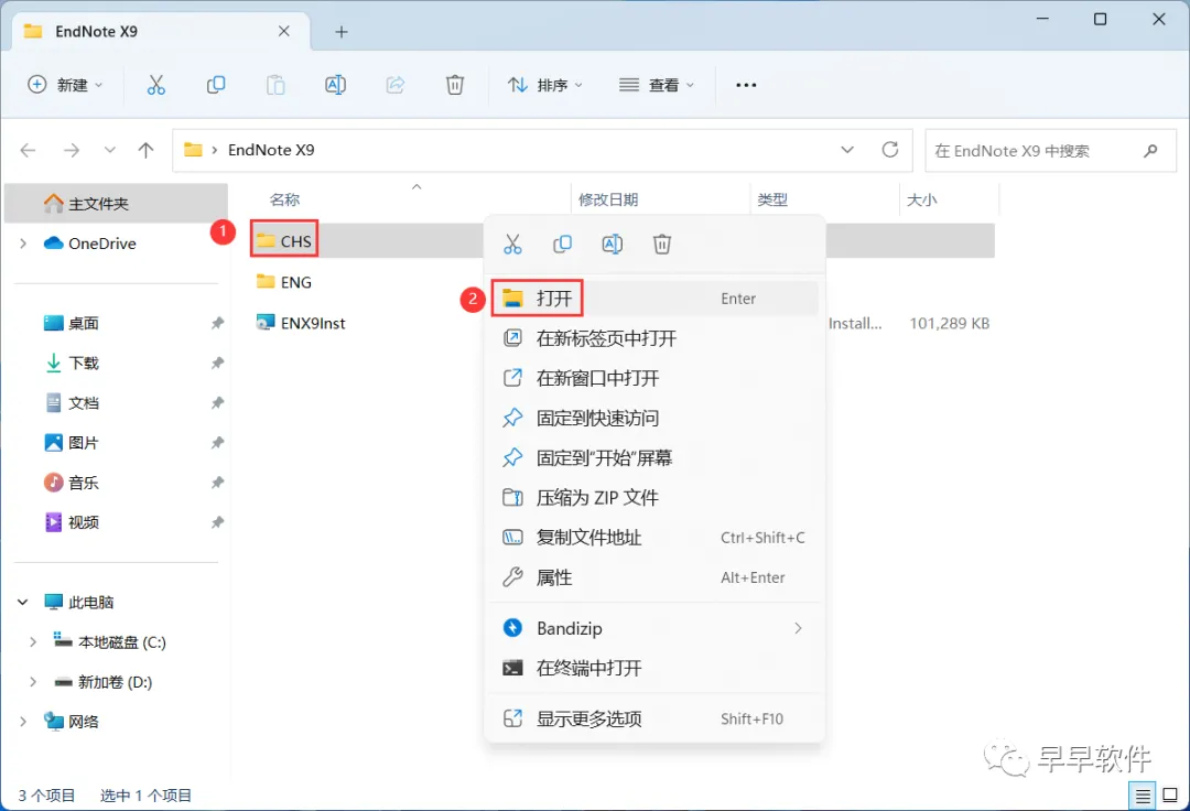 14、回到EndNote X9文件夹,找到【CHS】文件夹,右键【打开】它