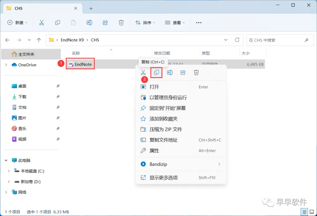15、找到【EndNote】文件,再右键点击【复制按钮】