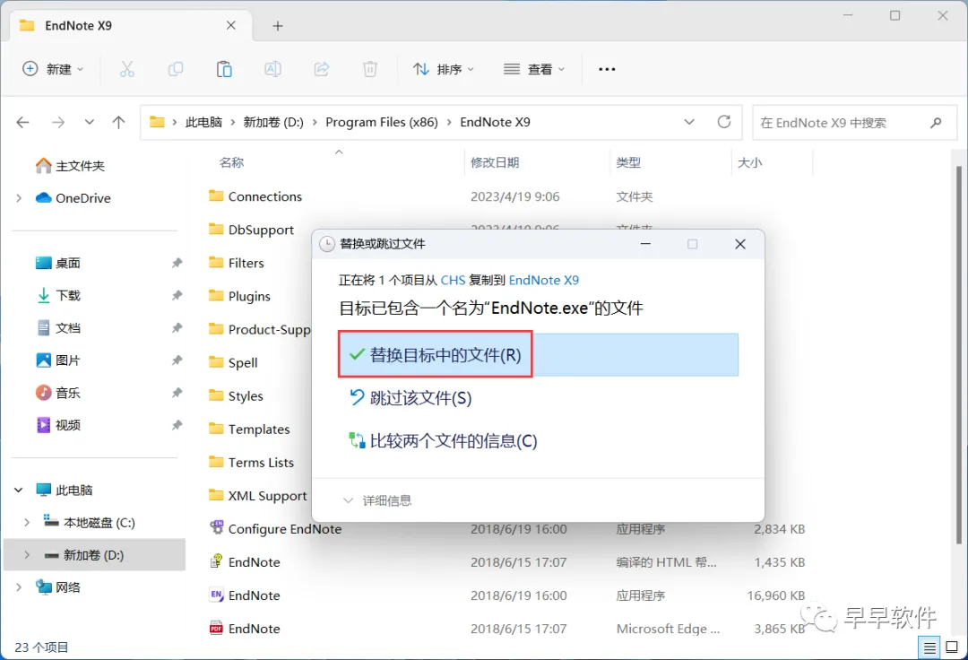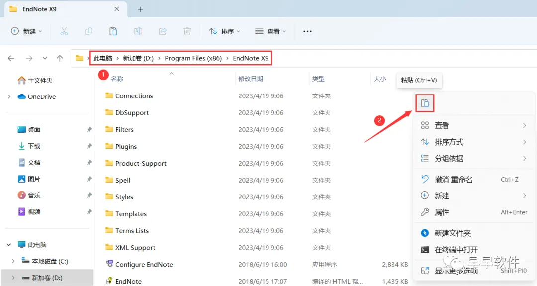16、打开路径:D:\Program Files (x86)\ EndNote X9,再右键文件夹的空白处,点击【粘贴按钮】