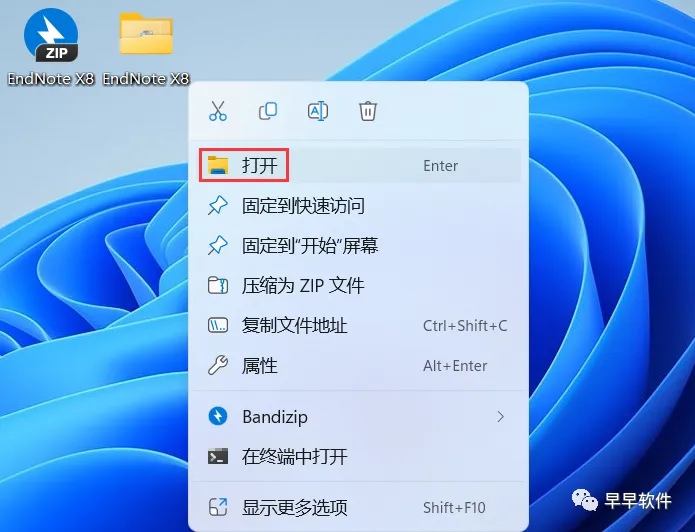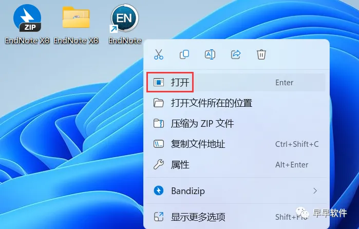 27、右键桌面上的【EndNote软件图标】,点击【打开】
