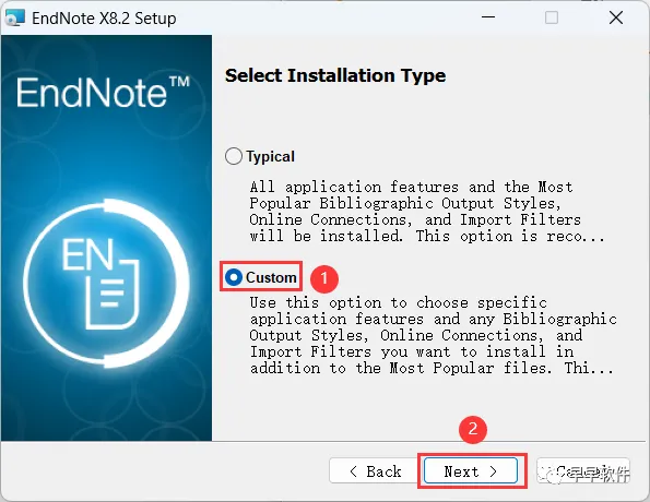 9、选择【Custom】,再点击【Next】
