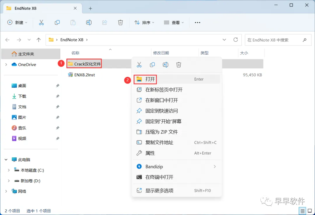 15、回到EndNote X8文件夹,找到【Crack汉化文件】文件夹,右键【打开】它