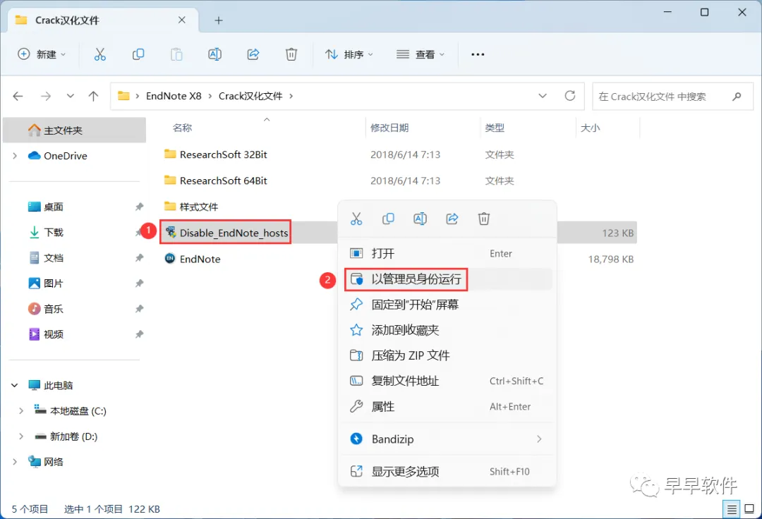 16、找到【Disable_ EndNote…】程序,右键选择【以管理员身份运行】它