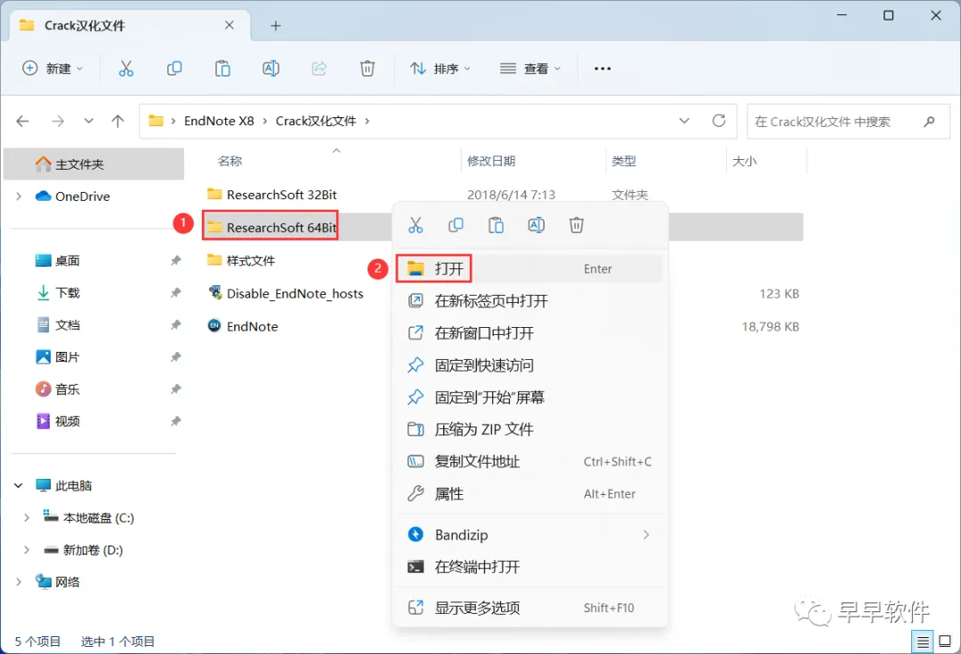 21、回到【Crack汉化文件】文件夹,找到【ResearchSoft 64Bit】文件夹,右键【打开】它