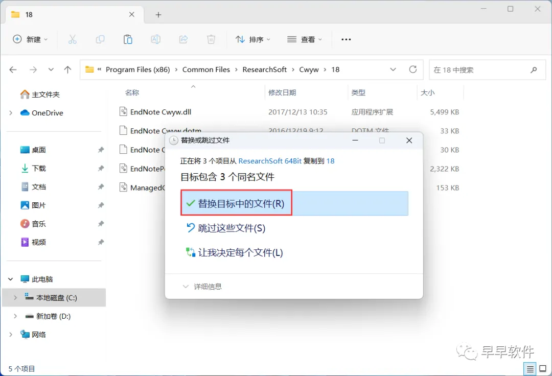24、点击【替换目标中的文件】
