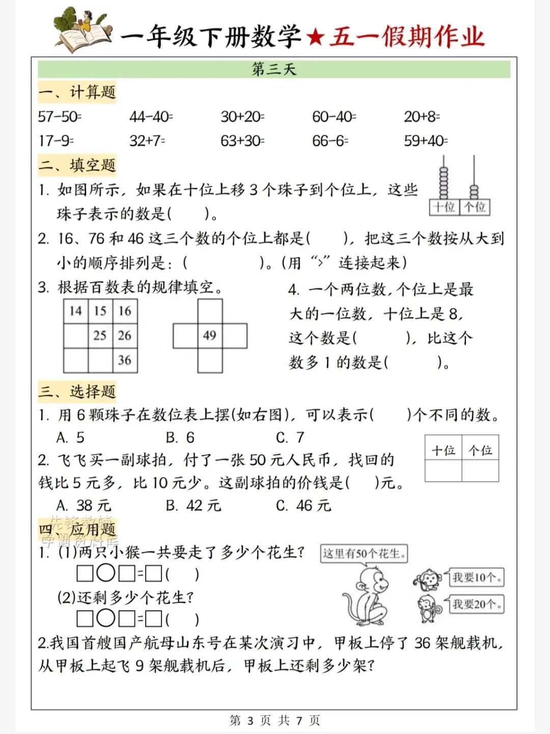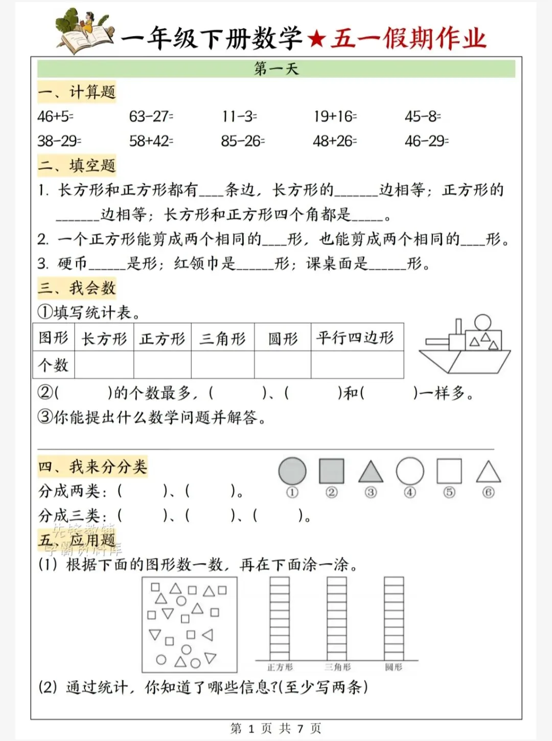 今天给大家整理了26春一年级下册数学五一假期作业,转发给朋友或班级群,受益更多人,帮助孩子学习!