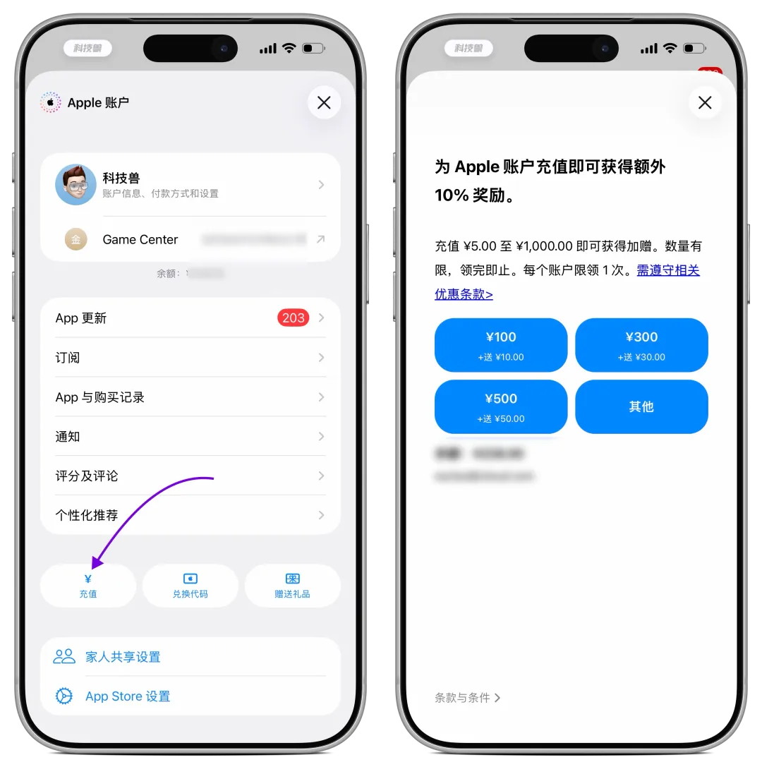 打开 App Store,点击右上角的个人头像,再点「充值」,就能看到这次的活动,