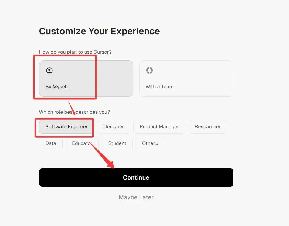 当出现以下界面后,即表示你已经注册Cursor账号成功;
