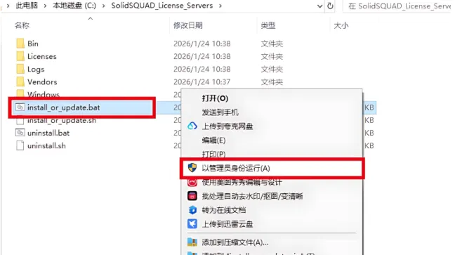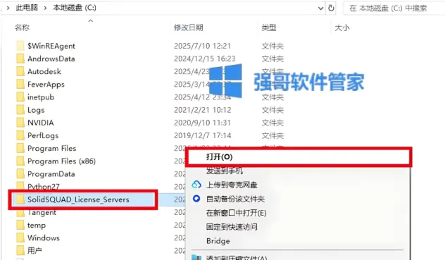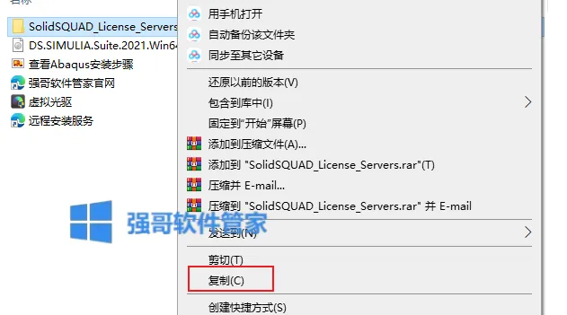 2.打开安装包,鼠标右击【SolidSQUAD_License_Servers】文件夹选择【复制】