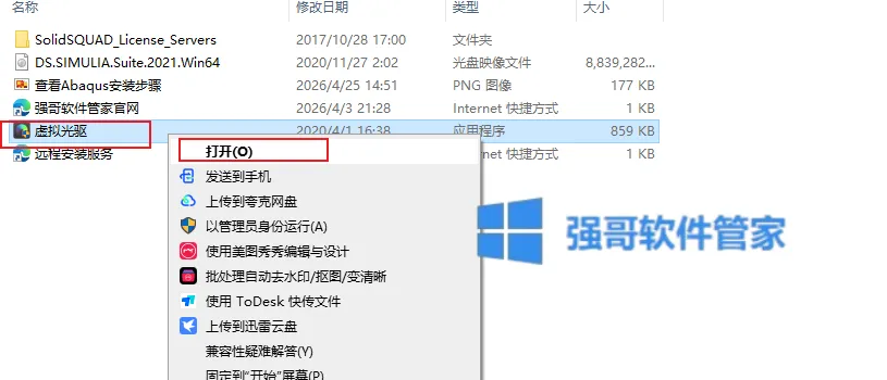 11.打开安装包解压后的【Abaqus2021(64bit)】文件夹,双击运行【虚拟光驱】。