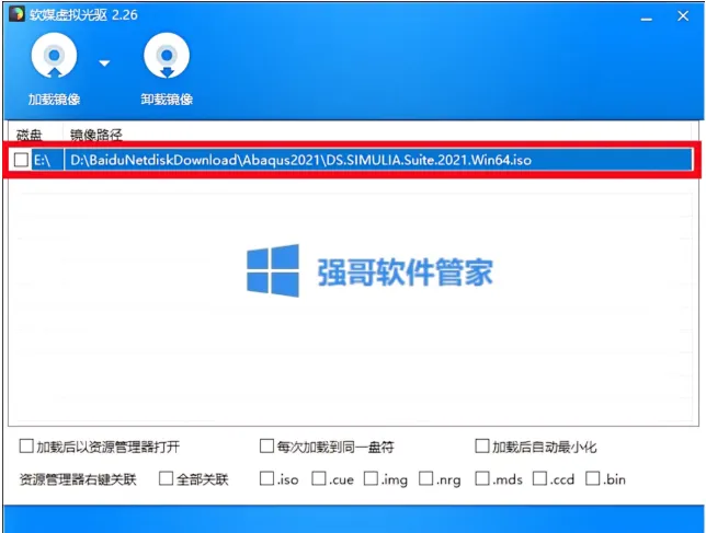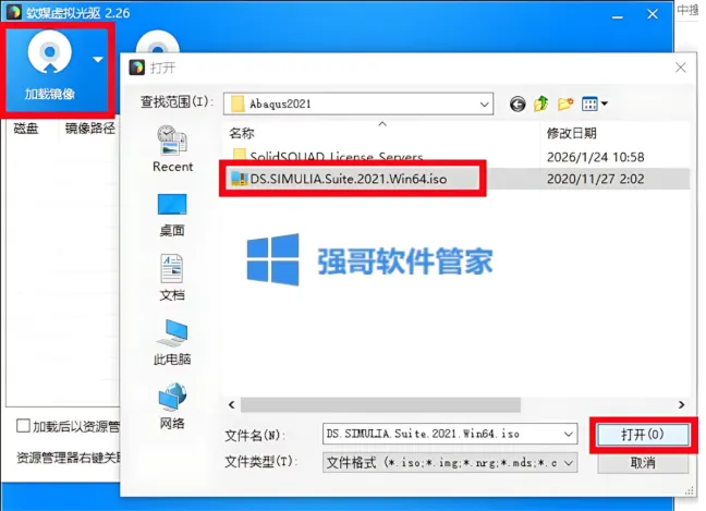 12.点击【加载镜像】选择【DS.SIMULIA.Suite.2021.Win64】,点击【打开】