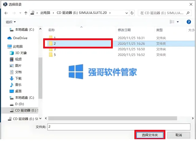 20.选择虚拟光驱加载后文件夹里的【2】,点击【选择文件夹】