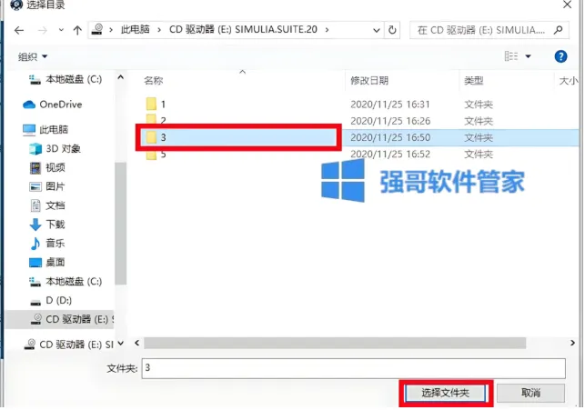 34.选择虚拟光驱加载后文件夹里的【3】,点击【选择文件夹】