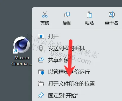 16,在桌面找到并选中Cinema 4D软件图标,点击鼠标右键,点击“打开文件所在的位置”