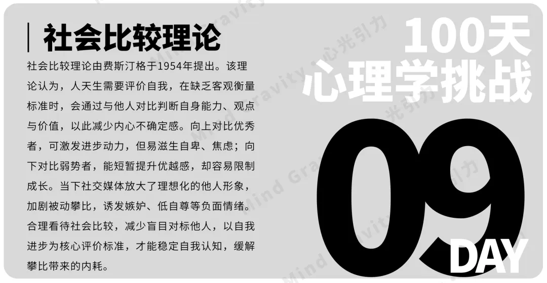 你掉进了“完美演员”的社会比较陷阱,这个陷阱叫「社会比较理论」,是社会心理学家费斯廷格早在1954年就发现的游戏规则——人对自己的评价,从来都不是凭空产生的,我们必须找一个参照物对比,才能知道自己“好不好”“行不行”。