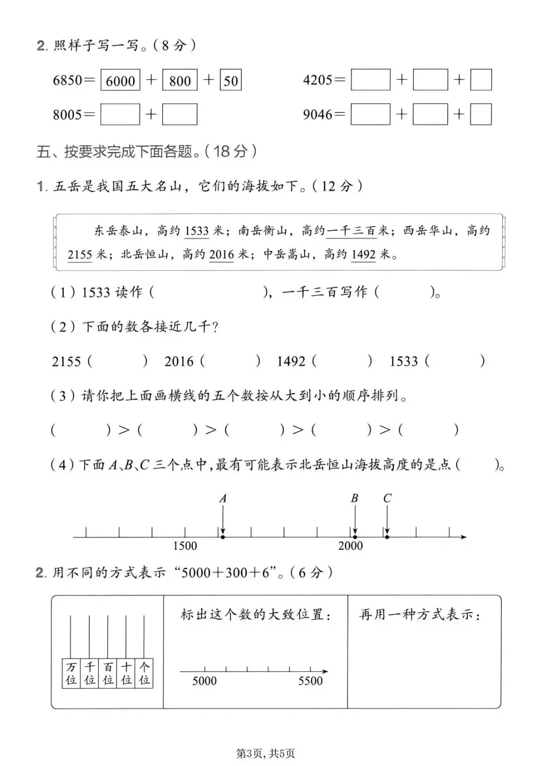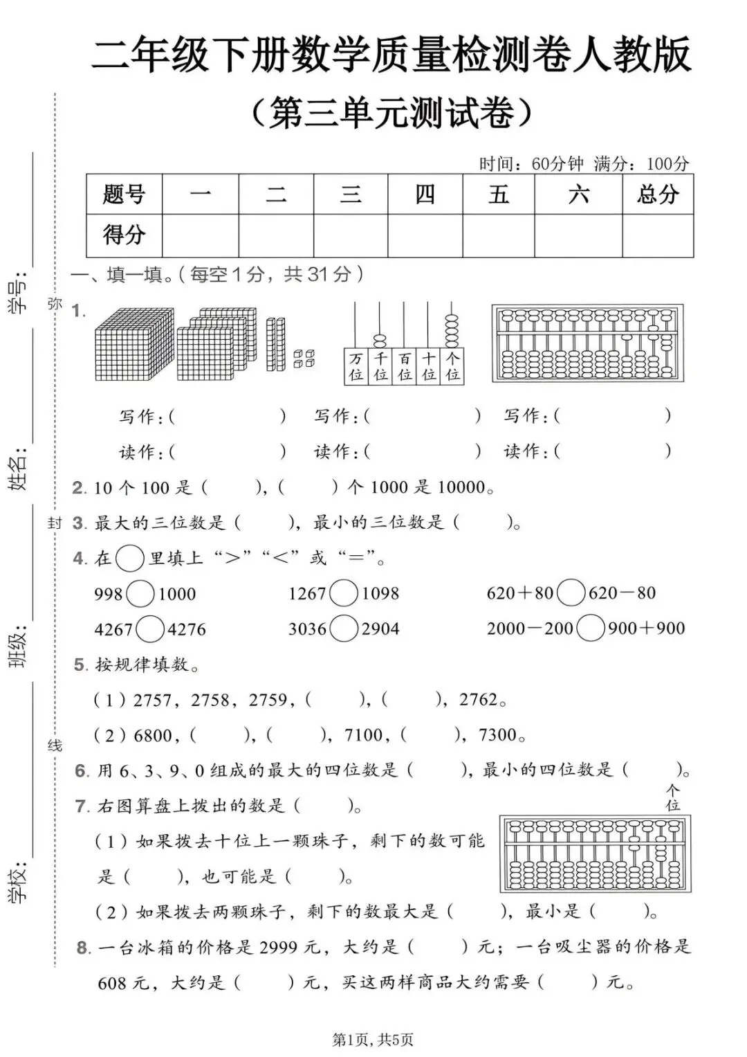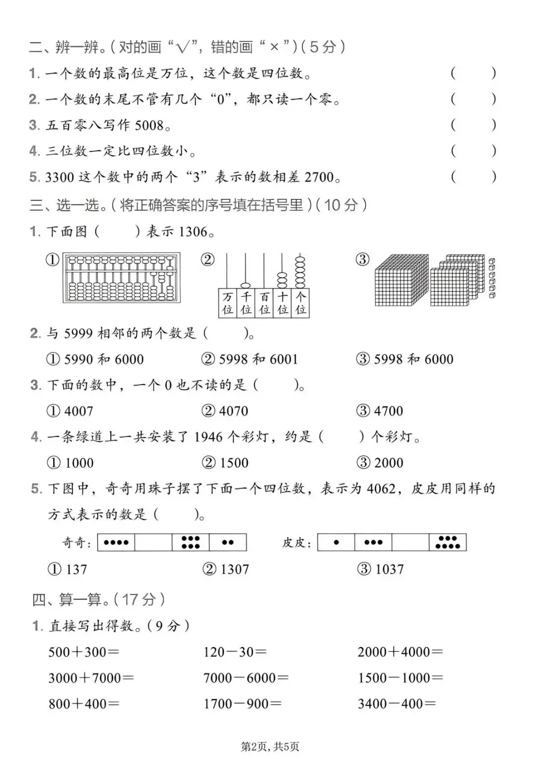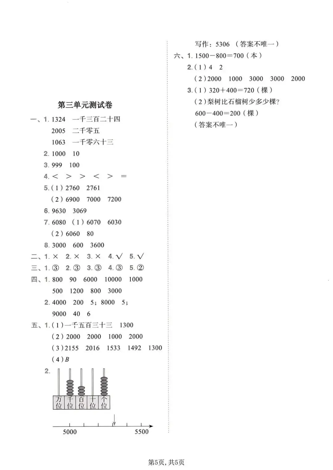 二下人教版数学第三单元拔尖测试卷(PDF版可打印)