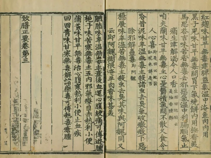 元刻本已佚,此为最接近原貌的明初官刻本 内府刊刻:校勘精、用纸墨精良、版画完整 多民族饮食融合