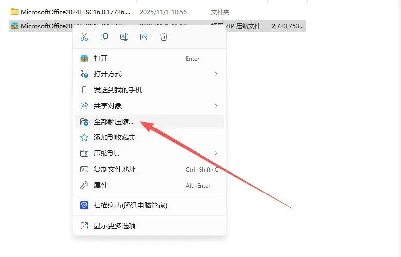 鼠标右击【Office LTSC 2024(64bit)】压缩包。