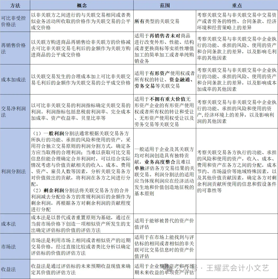 (5)转让定价方法