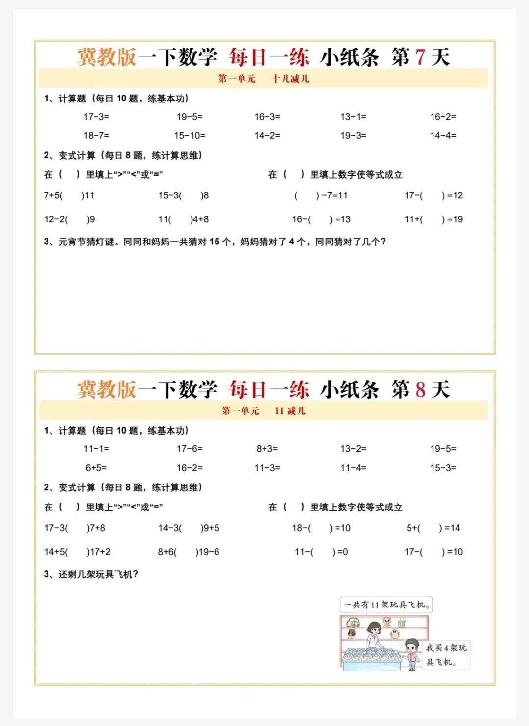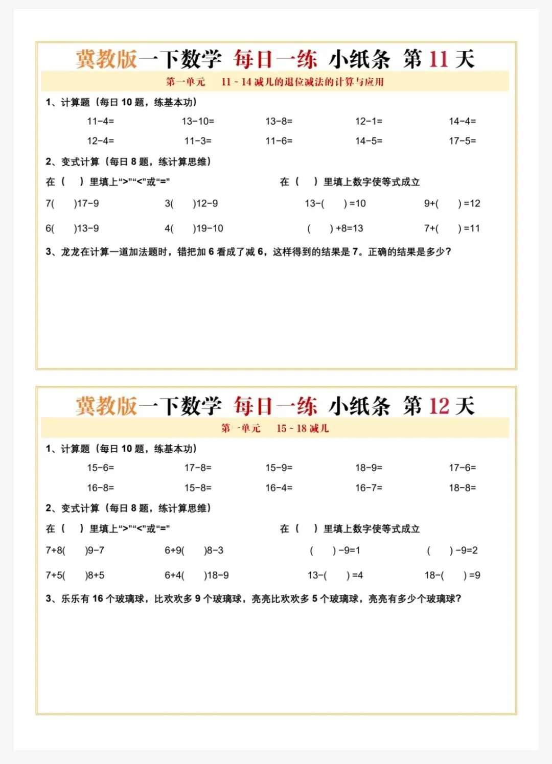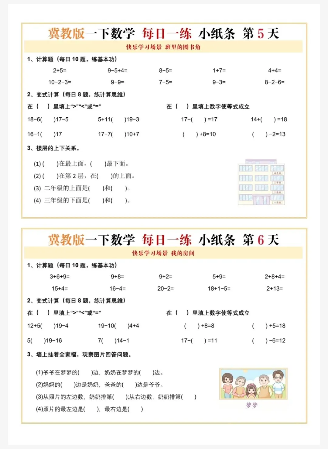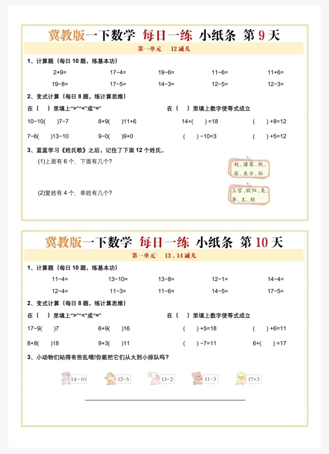 冀教版一年级下册数学每日一练共60天 电子版可下载文末有下载方法(因篇幅有限,仅展示部分内容)获 取 方 法方法: 关注👇公众号,再点【发消息】,下方对话框中输入:0263 说明本微信公众账号分享的资源均通过网络等公共合法渠道获得,仅供试用!文章中的视频及图片均来自网络,版权归原作者或原出版社所有。如有侵权,请及时联系删除。