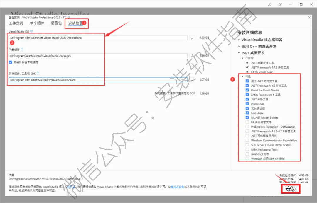 7、选择【安装位置】选择软件的安装位置(如:将C改为D表示安装到D盘),继续勾选自己所需的插件,然后点击【安装】