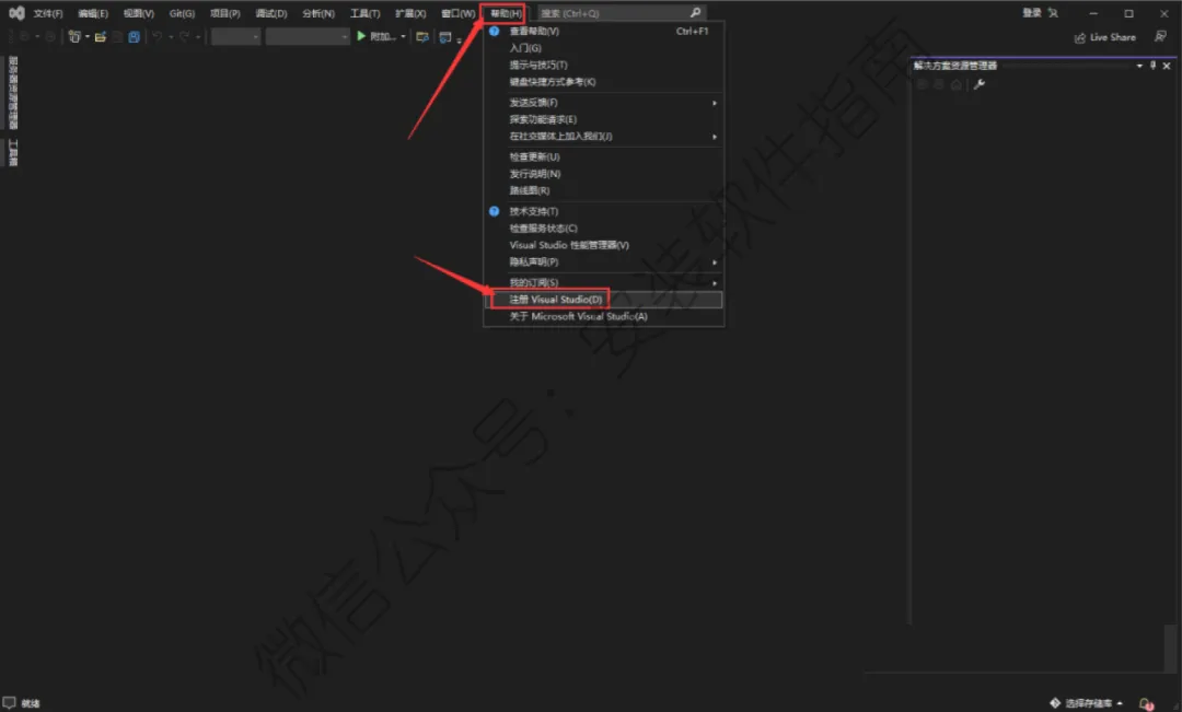 16.点击【帮助】选择【注册Visual Studio】