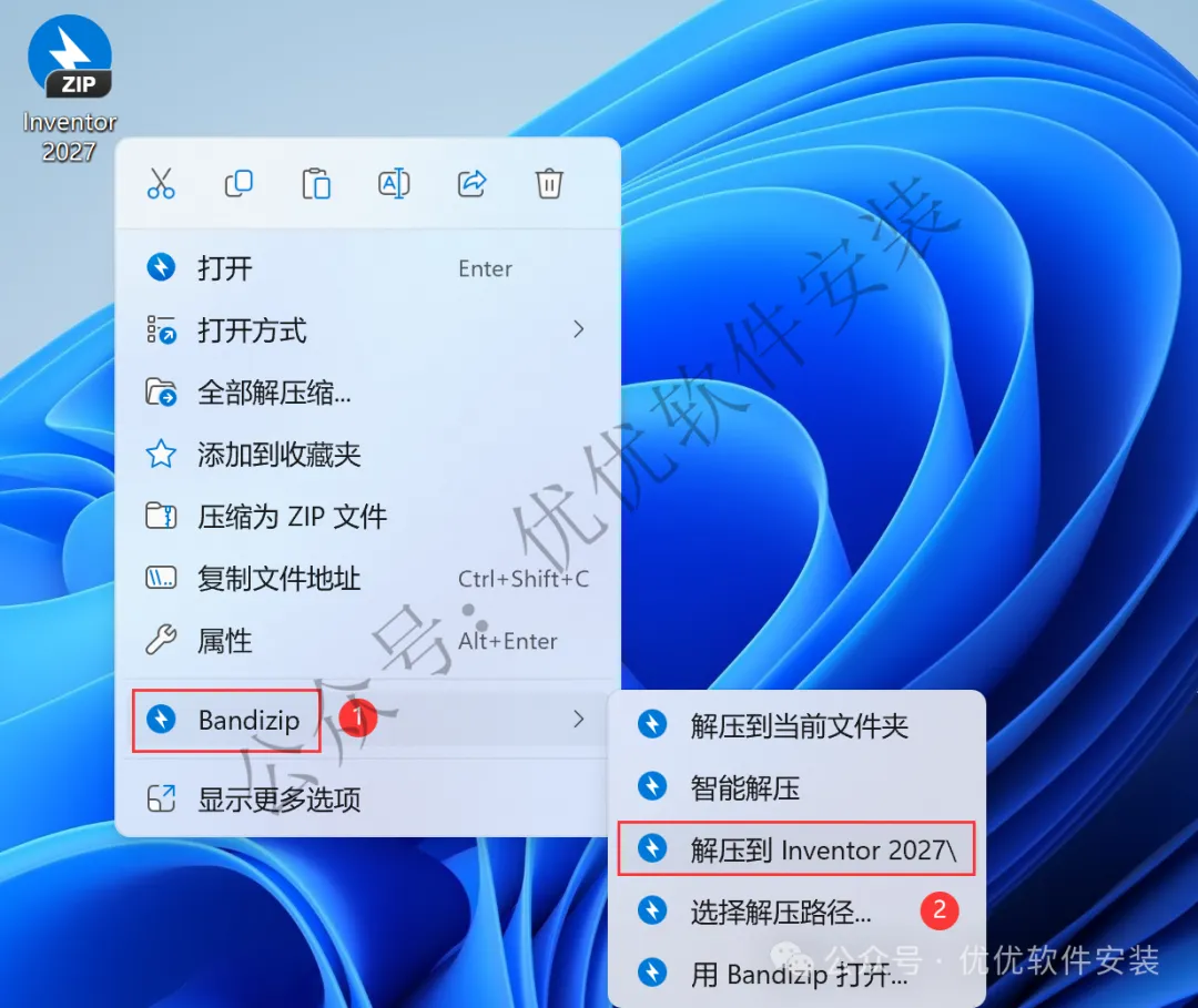 1、下载Inventor 2027软件安装包到电脑上,右键选择【解压到Inventor 2027\】