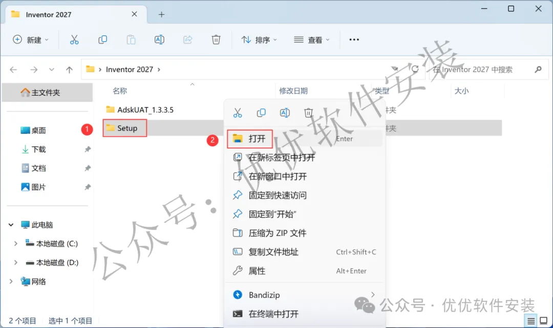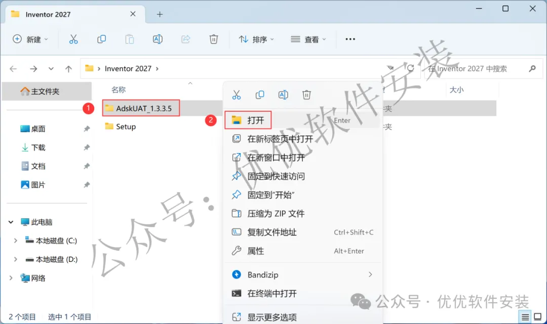 10、回到Inventor 2027文件夹,找到【AdskUAT_1.3.3.5】文件夹,右键【打开】它