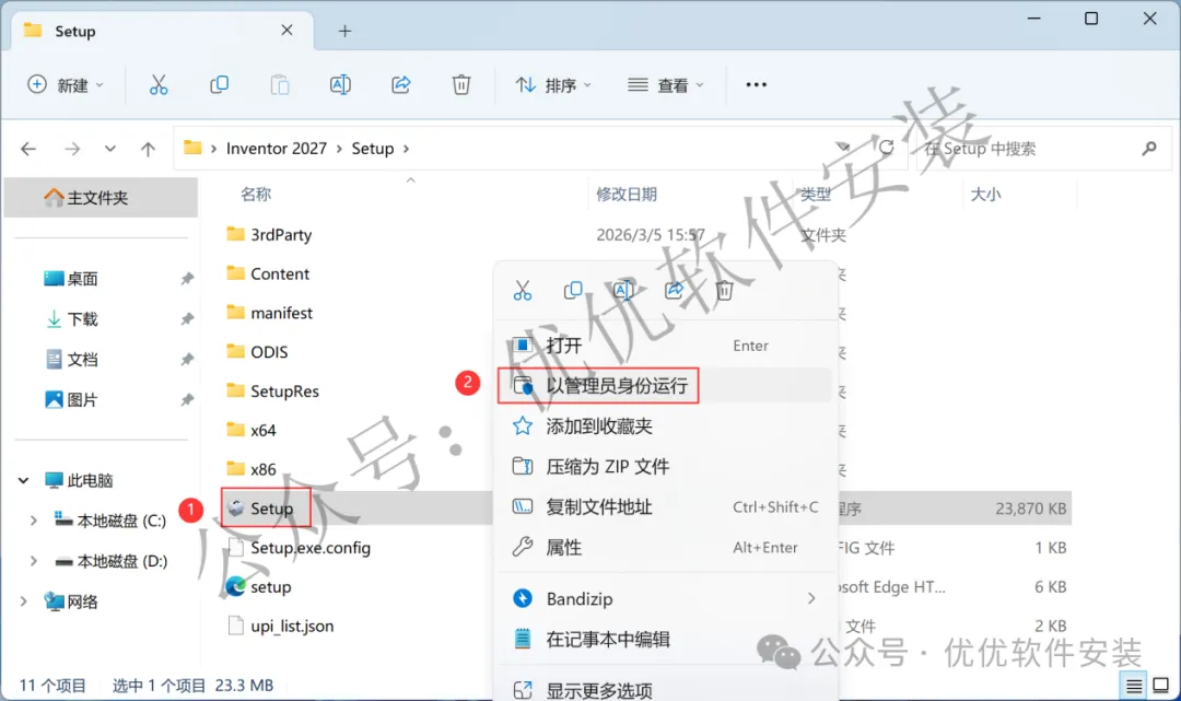 4、找到【Setup】应用程序,右键选择【以管理员身份运行】它