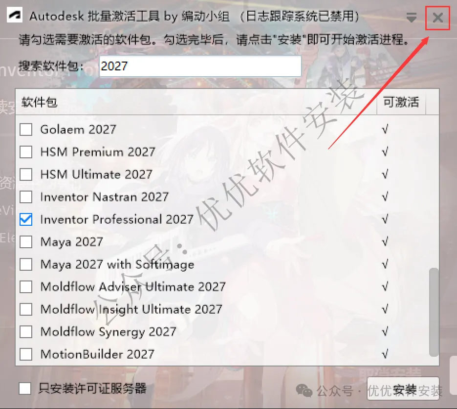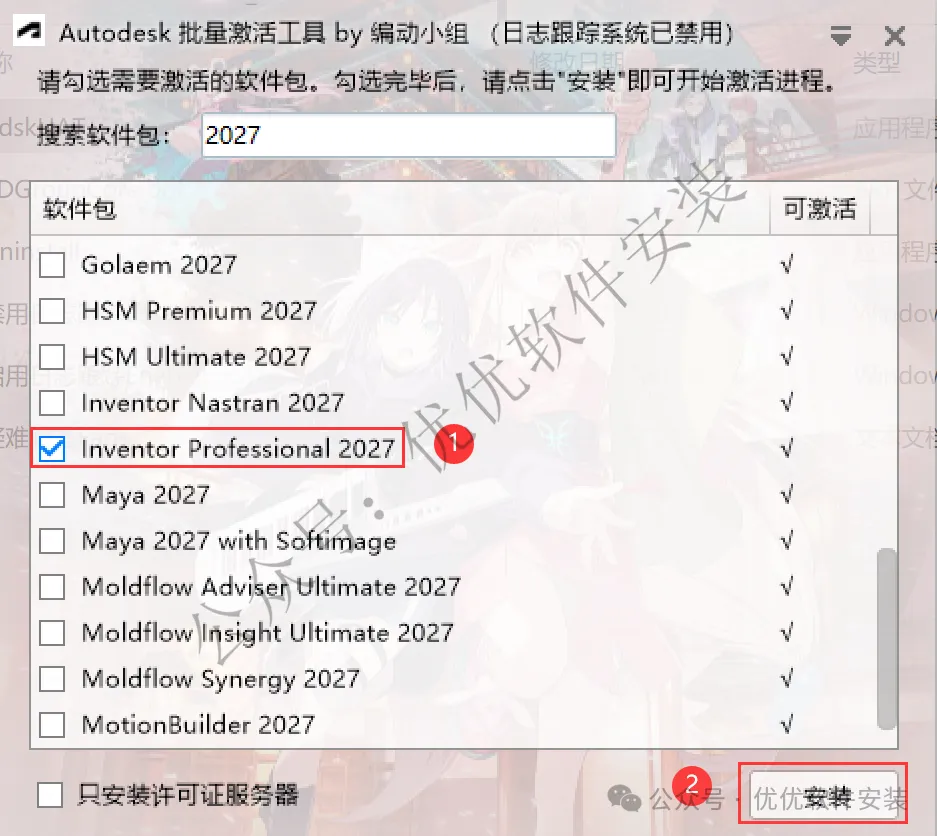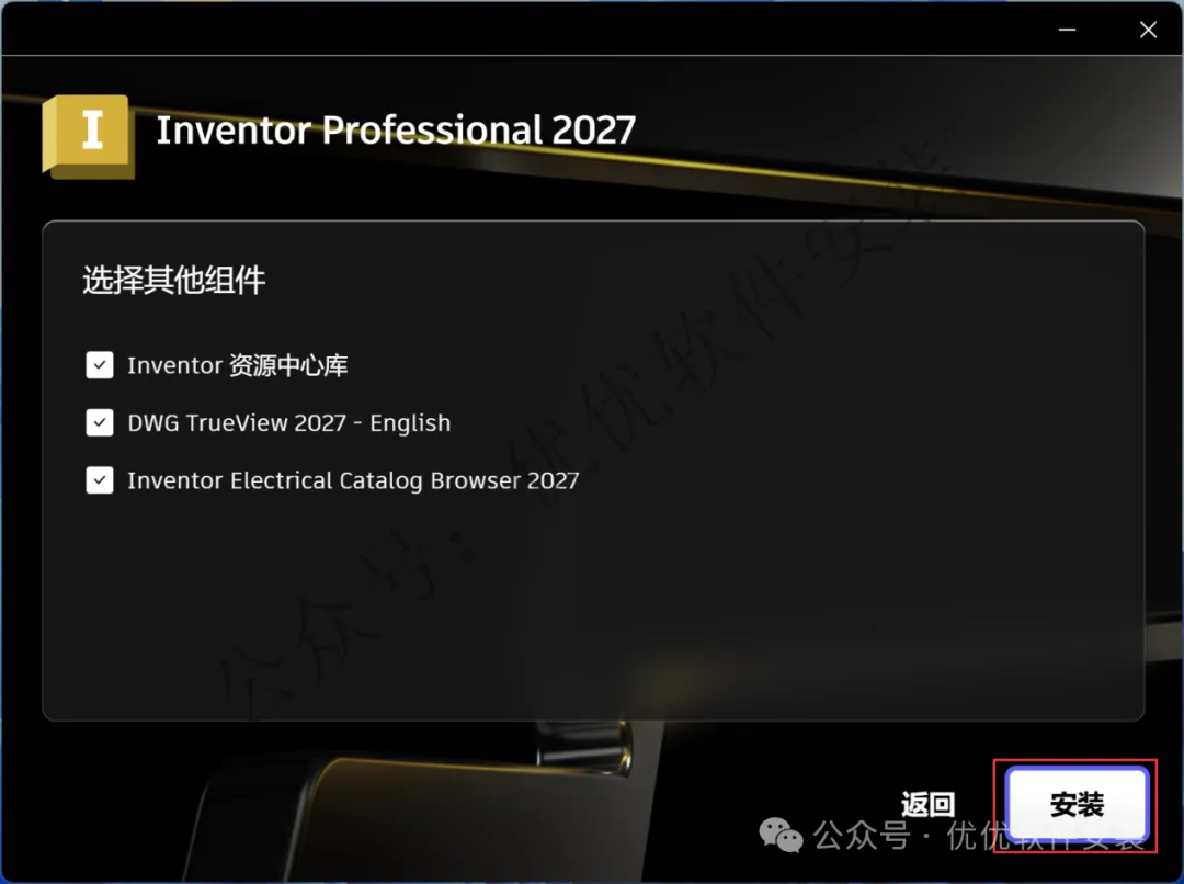 12、找到并选中【Inventor Professiona 2027】程序,再点击【安装】