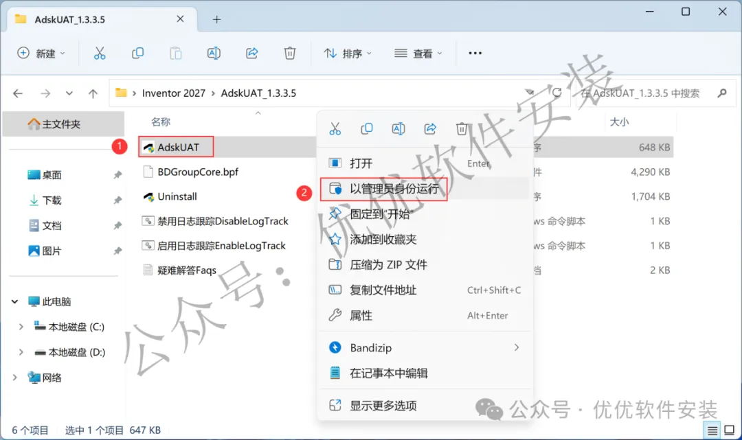 11、找到【AdskUAT】文件,右键选择【以管理员身份运行】它