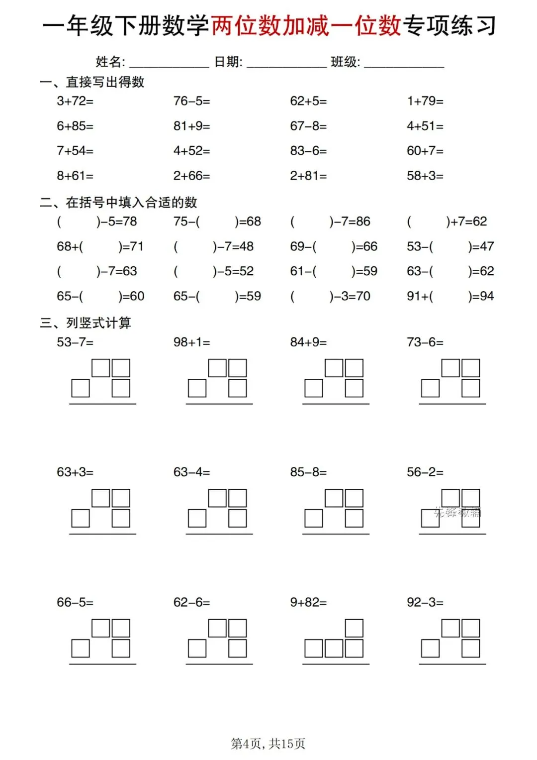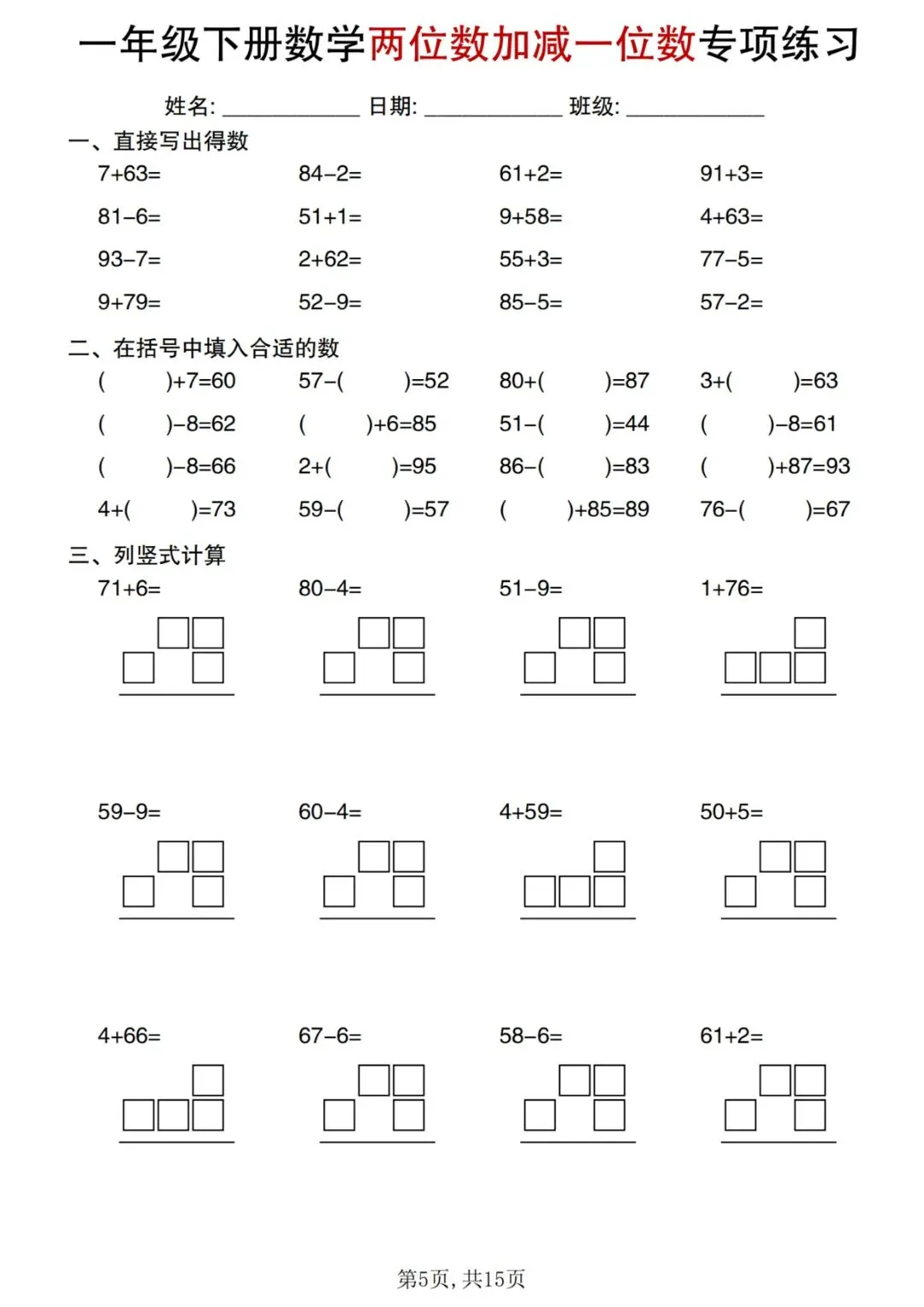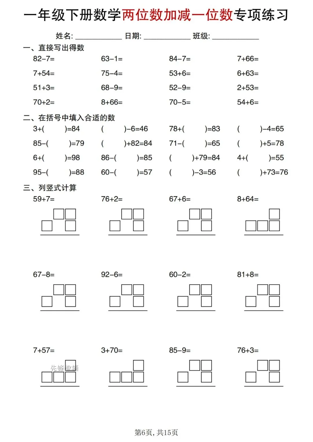⏩数学计算《五星达人》合集1-6年级