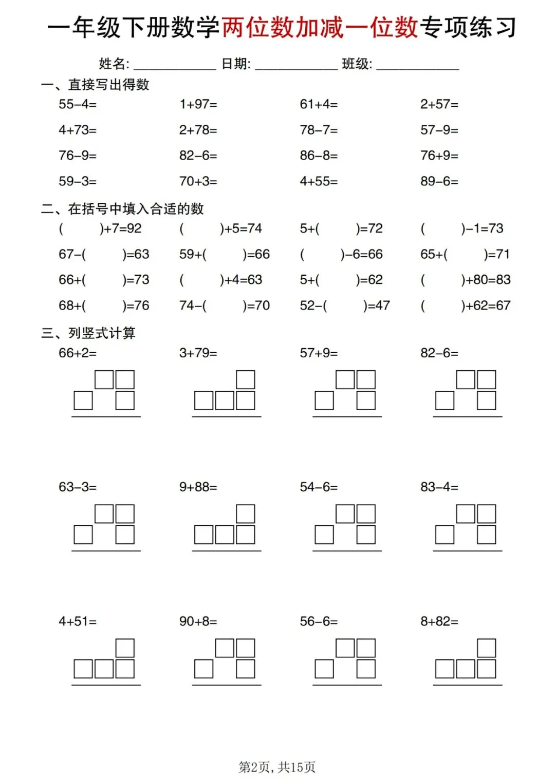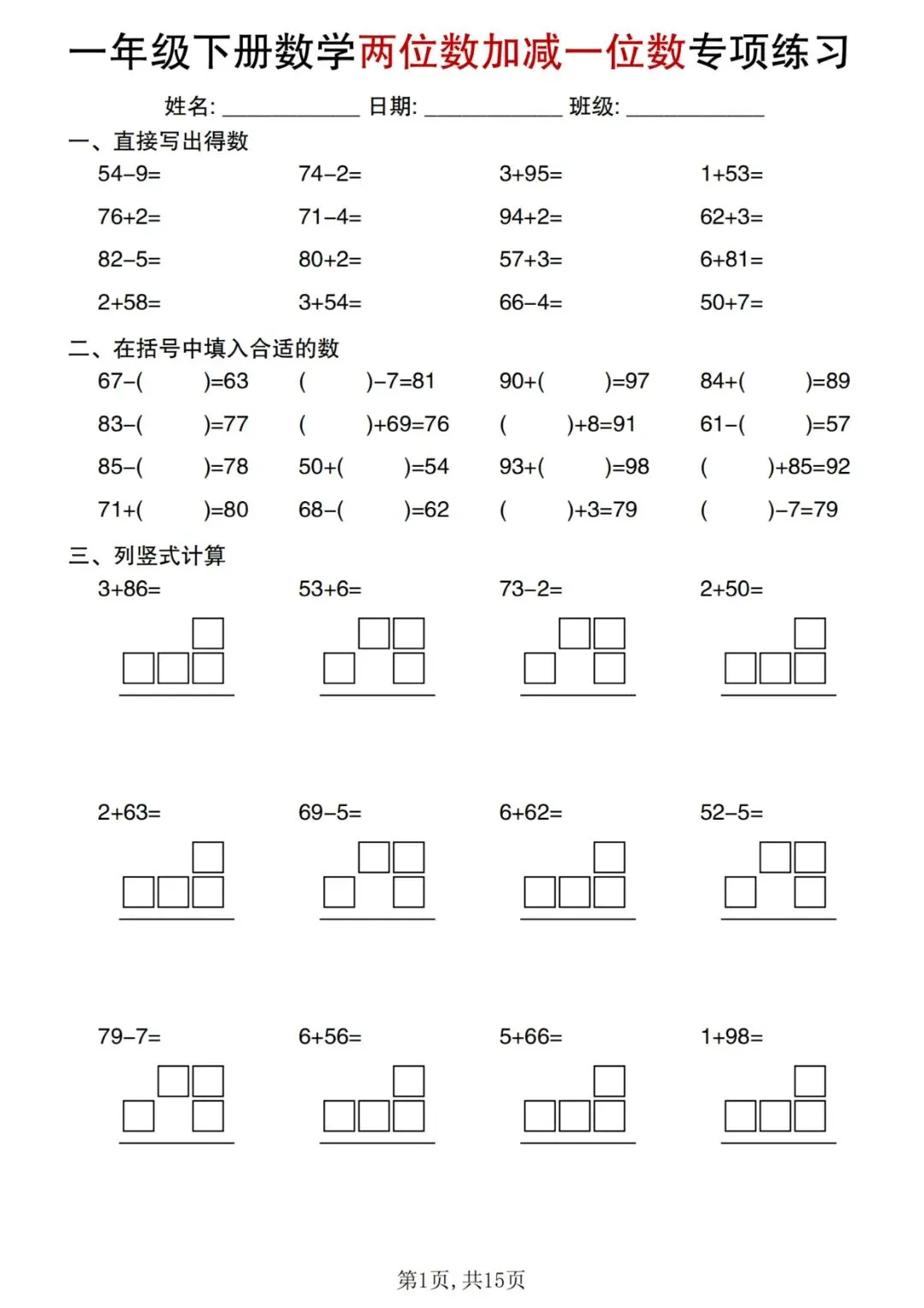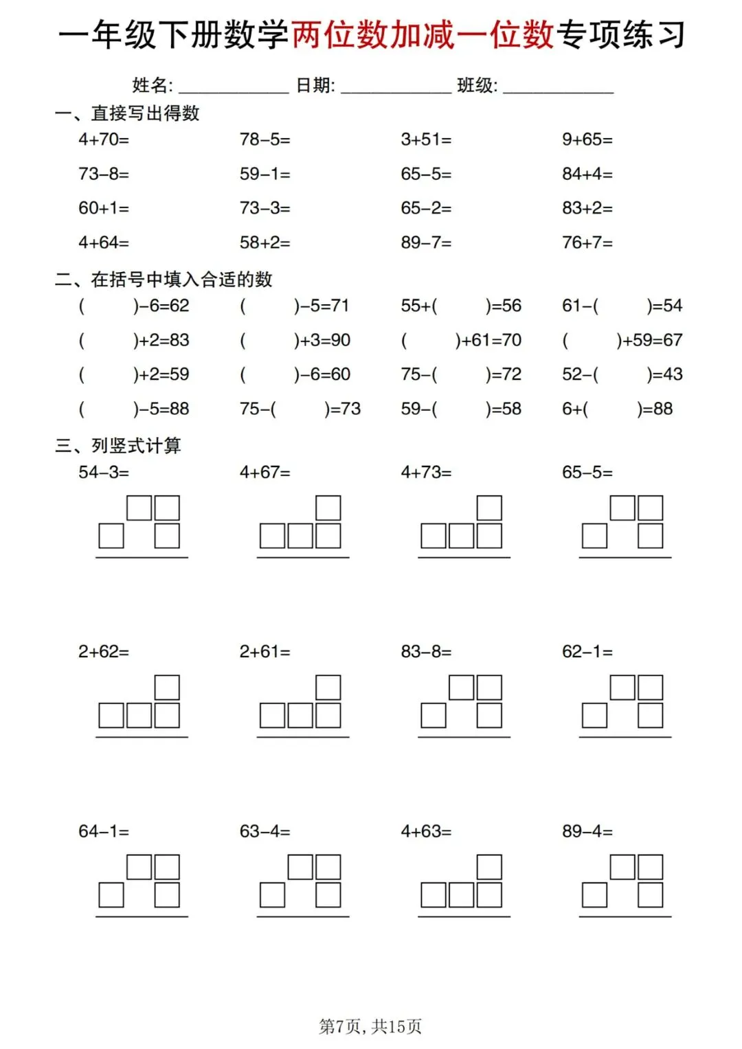 ⏩数学计算《五星达人》合集1-6年级