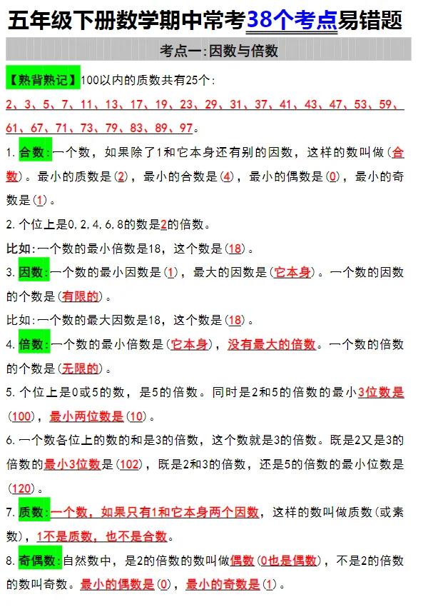 五年级下册数学期中常考38个考点易错题,可下载打印注:文章结尾有免费获取电子版步骤 领取完整电子版资料:①点一点右下角的“赞”和“在看”,感谢②在公众号对话框中回复:0416↑不会领取资料的请看以上步骤↑