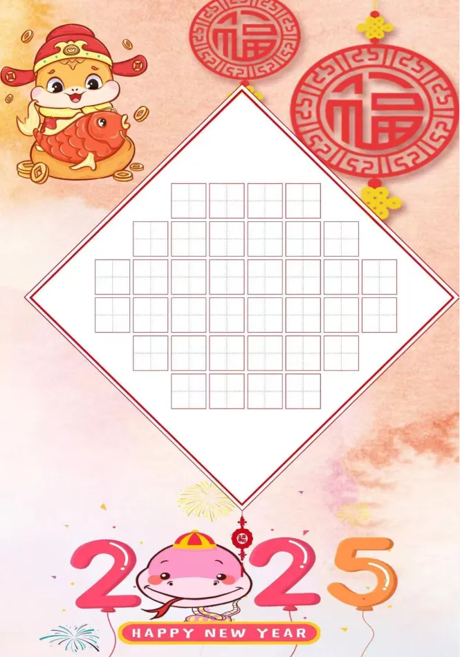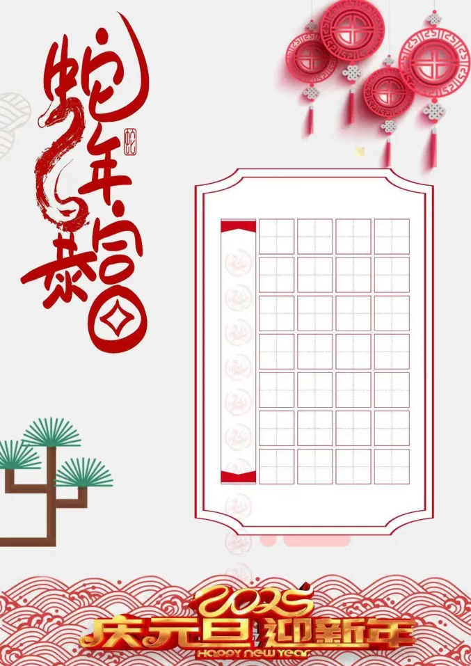 2025蛇年春节《网红硬笔书法作品纸》PDF电子版,可下载打印,书法练习纸蛇年硬笔书法作品纸(网盘下载链接)内容展示版面所限,此处仅展示部分内容更多内容请自行下载观看网盘下载 下载方法扫码保存资源到自己网盘账号登录夸克网盘APP即可下载版权声明:本资源为免费分享,仅供学习和教学使用版权归原作者所有,如有侵权请联系删除
