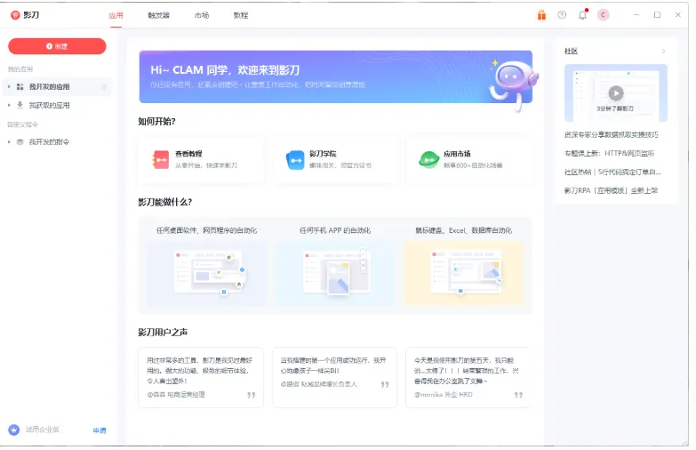 影刀是一款软件机器人,电脑办公必备的效率神器,能模拟人的各种操作,在任何应用程式上进行鼠标点击、键盘输入、读取信息等操作,释放人的有逻辑规则、重复的非主观决策性工作。