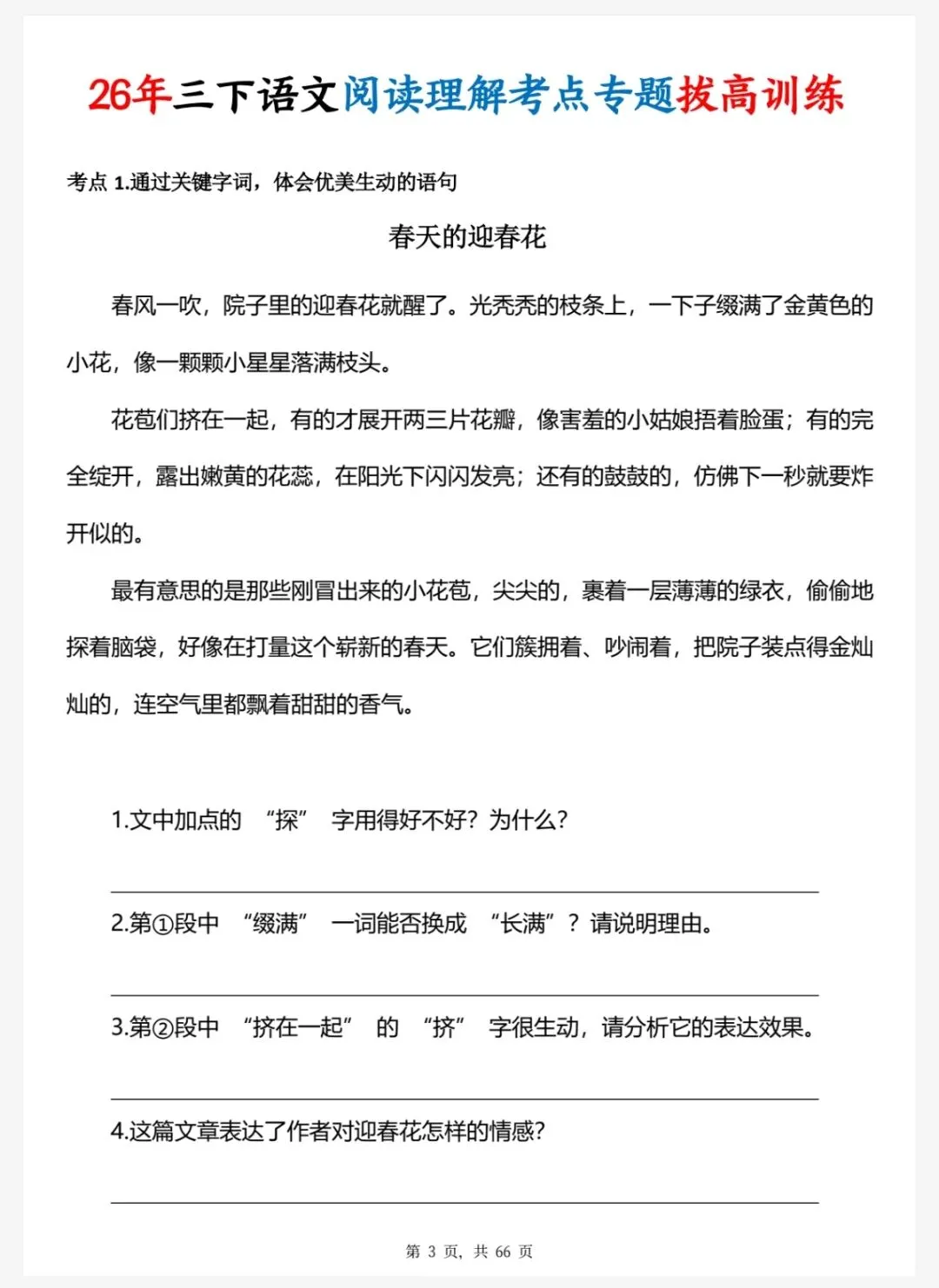 电子版🉑下载,家长可以下载下来给学生巩固练习,完整电子版文章末尾可直接领取(本文章页拉到底)欢迎收藏和下载。