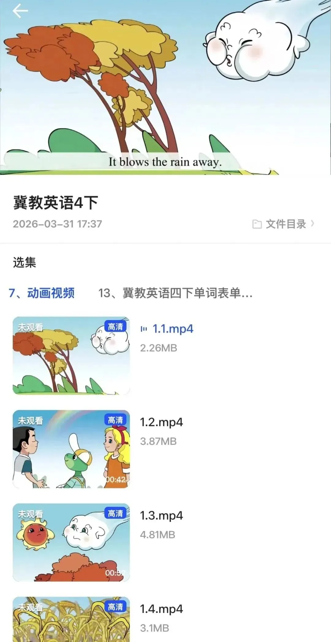 26春新版冀教版英语四年级下册电子课本教材+课本同步音频听力音频+课本配套动画视频unit1-unit6练习预习扫码左边小程序可跟读听力音频下载完整电子版请拉至文末篇幅原因,以上为部分节选可以先点“赞👍+推荐♥”关注公众号回复:“小学”↓↓↓长按识别下方二维码打印扫码下方小程序即可电子版打印