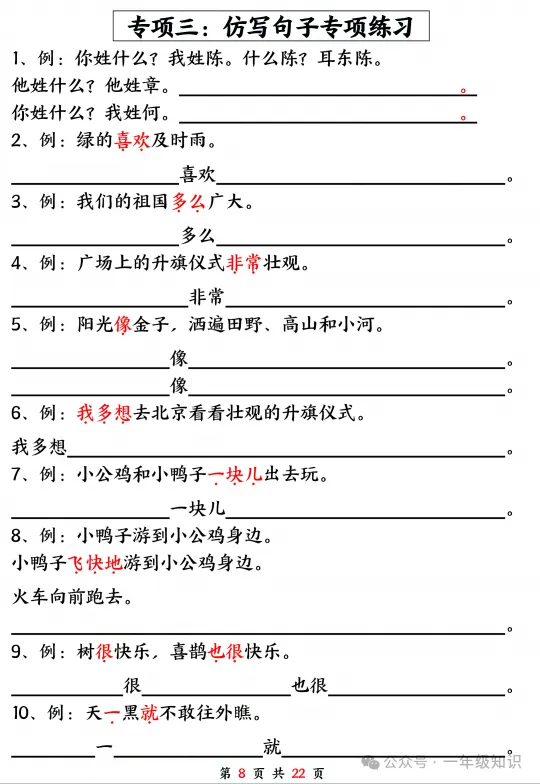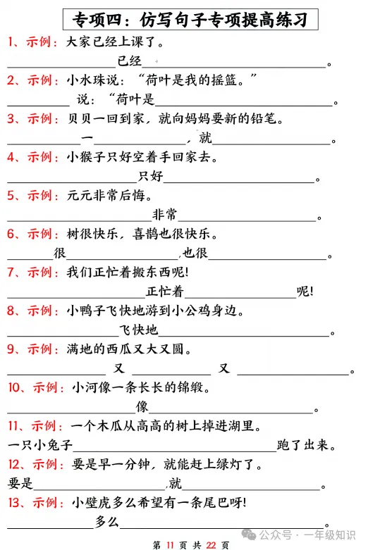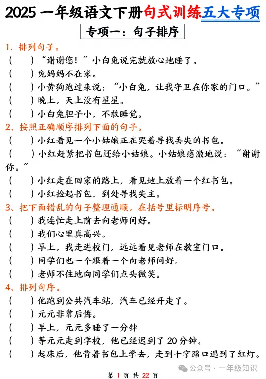 一年级下册语文期中句式训练五大专项练习,可下载打印注:文章结尾有免费获取电子版步骤 领取完整电子版资料:①点一点右下角的“赞”和“在看”,感谢②在公众号对话框中回复:0416↑不会领取资料的请看以上步骤↑